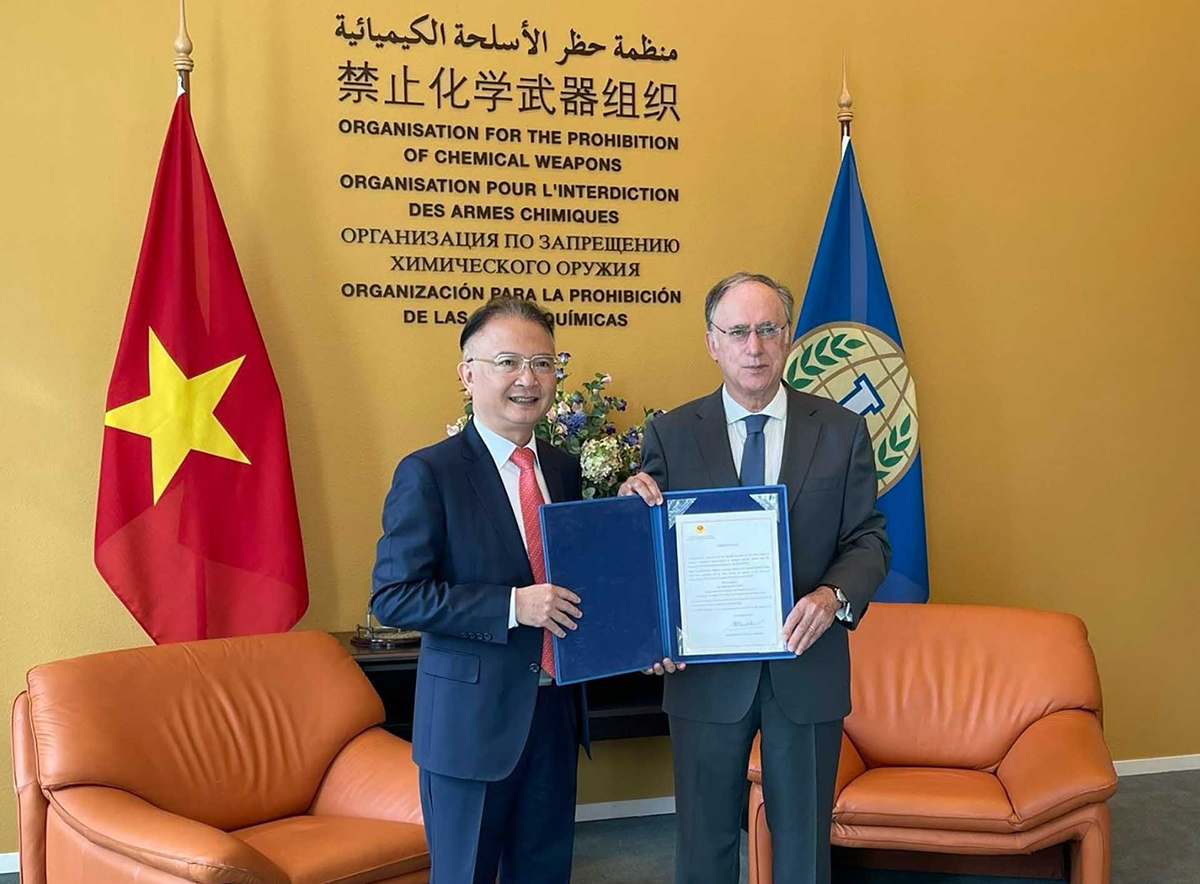 Đại sứ Ngô Hướng Nam trình Thư ủy nhiệm tại trụ sở OPCW. Ảnh: baoquocte.vn |