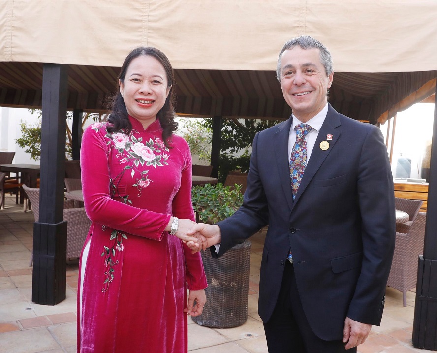 Phó Chủ tịch nước Võ Thị Ánh Xuân và Tổng thống Liên bang Thụy Sỹ Ignazio Cassis. Ảnh: TTXVN |