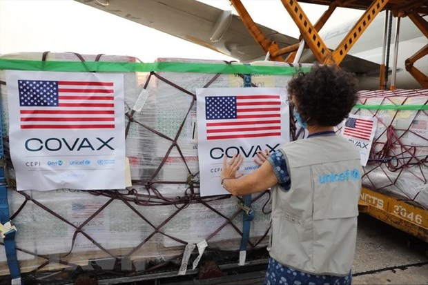 Máy bay chở hơn 1,5 triệu liều vaccine Moderna phòng COVID-19 đáp xuống Sân bay Quốc tế Nội Bài. Ảnh: TTXVN |