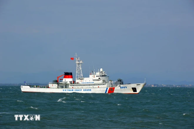 Tàu CSB 8003 trong chuyến tuần tra liên hợp giữa Cảnh sát biển Việt Nam và Trung Quốc. Ảnh: TTXVN |