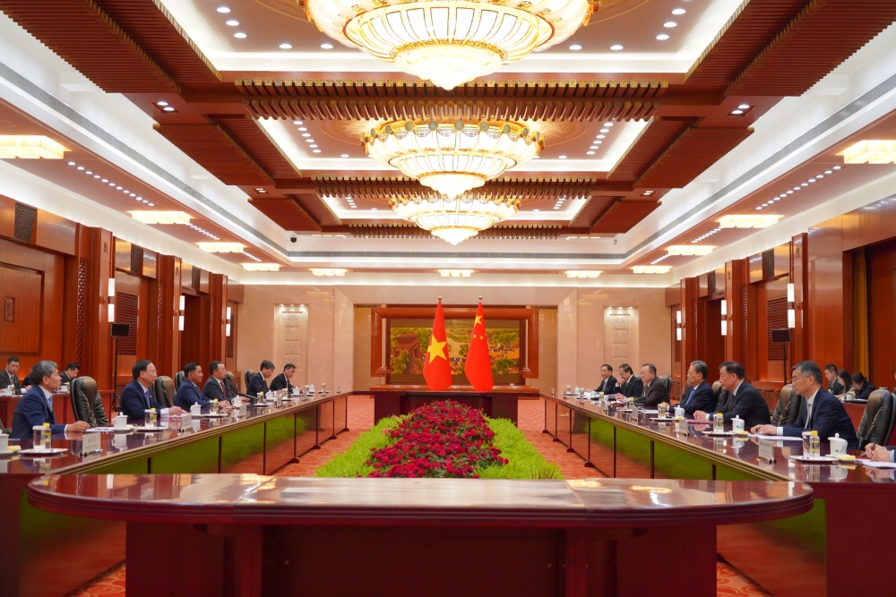 Tiếp tục chương trình thăm và làm việc tại Trung Quốc, sáng nay (7/11), tại Đại lễ đường nhân dân Bắc Kinh, ông Trần Cẩm Tú, Ủy viên Bộ Chính trị, Bí thư Trung ương Đảng, Chủ nhiệm Ủy ban Kiểm tra Trung ương Đảng Cộng sản Việt Nam, hội kiến với ông Triệu Lạc Tế, Ủy viên Thường vụ Bộ Chính trị, Ủy viên trưởng Ủy ban Thường vụ Đại hội đại biểu nhân dân toàn quốc Trung Quốc.