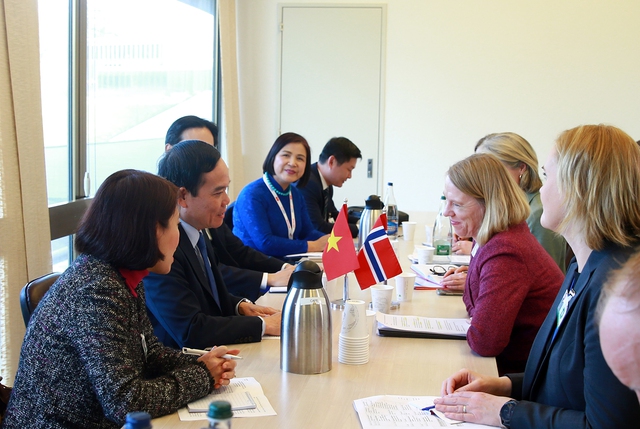 Tiếp Bộ trưởng Ngoại giao Na Uy Anniken Huitfeld, Phó Thủ tướng đề nghị hai bên nghiên cứu thiết lập cơ chế Ủy ban hỗn hợp về kinh tế - thương mại; đề nghị Na Uy với vai trò là nước điều phối đàm phán, thúc đẩy sớm kết thúc đàm phán, ký kết và triển khai Hiệp định thương mại tự do giữa Việt Nam và khối Hiệp hội mậu dịch tự do Châu Âu (EFTA) gồm Iceland, Liechtenstein, Na Uy và Thụy Sỹ; mở rộng hơn nữa các lĩnh vực hợp tác, nhất là năng lượng sạch, năng lượng tái tạo, kinh tế biển bền vững.