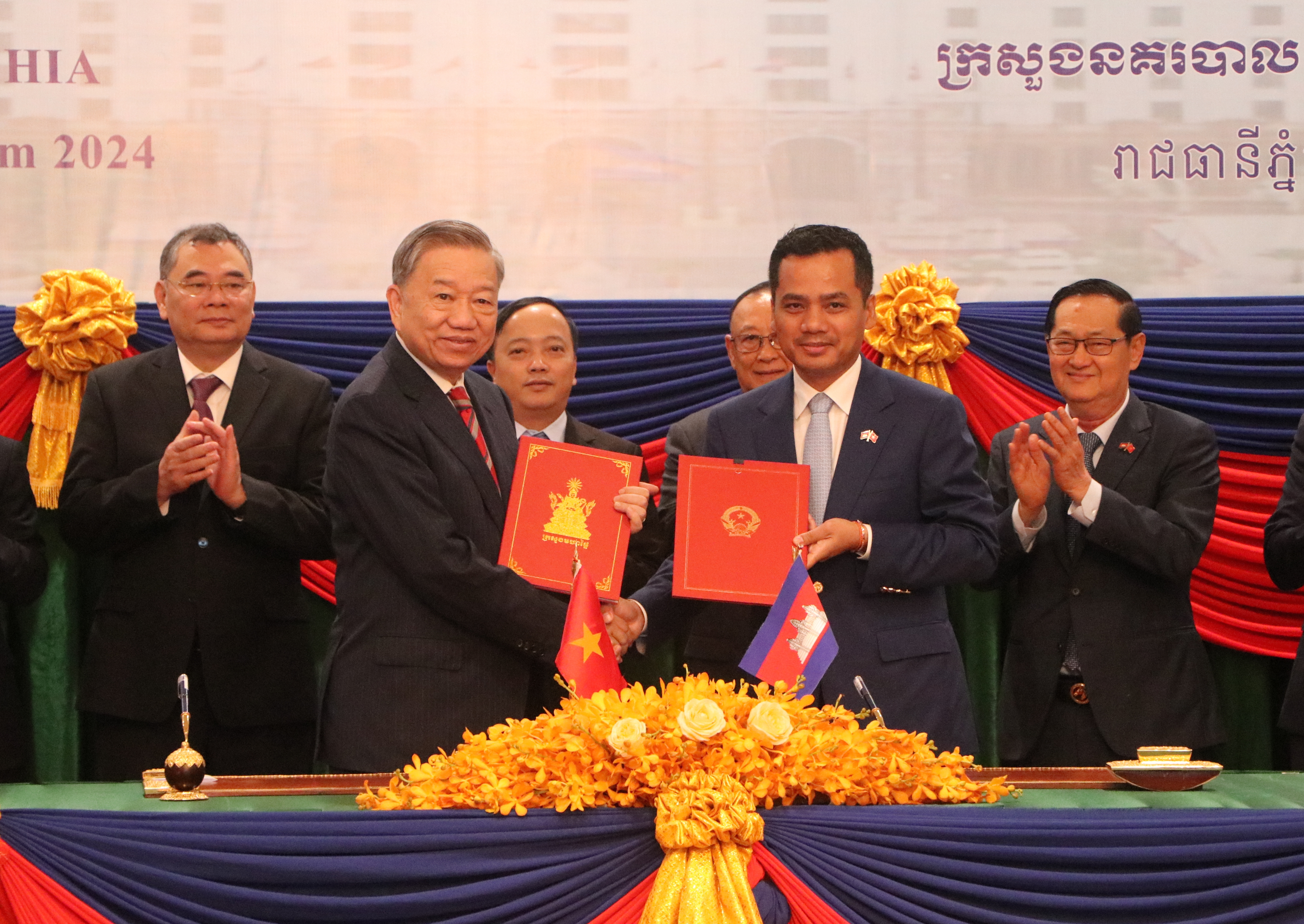 Trong hội đàm sau đó, hai bên nhất trí tăng cường trao đổi thông tin, đấu tranh, ngăn chặn âm mưu, thủ đoạn chống phá, chia rẽ hai nước của các thế lực thù địch, phản động. Phối hợp bảo đảm an ninh, an toàn, trật tự xã hội; không để bên thứ ba sử dụng lãnh thổ của nước này để chống phá nước kia; Cơ quan chức năng hai Bộ tăng cường đấu tranh chuyên án chung đối với các loại tội phạm, nhất là tội phạm xuyên quốc gia như tội phạm ma túy, hình sự, mua bán người, tội phạm sử dụng công nghệ cao… Kết thúc hội đàm, hai bên đã ký Kế hoạch hợp tác năm 2024 giữa Bộ Công an Việt Nam và Bộ Nội vụ Campuchia.