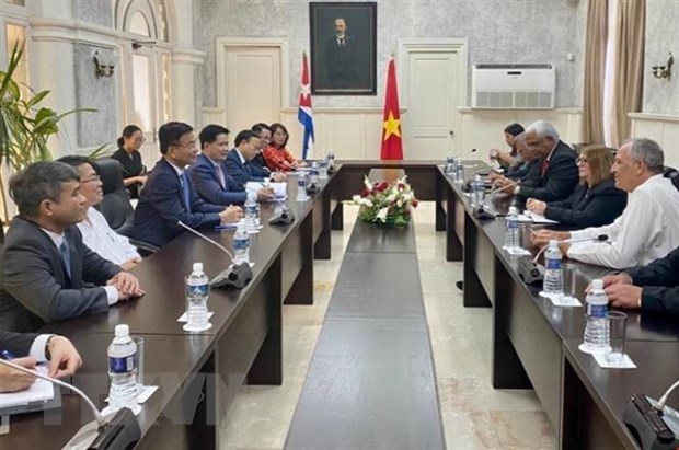 Đoàn đại biểu Bộ Tư pháp do Bộ trưởng Lê Thành Long dẫn đầu làm việc với lãnh đạo Tòa Án Nhân dân Tối cao Cuba. Ảnh: Mai Phương/TTXVN |