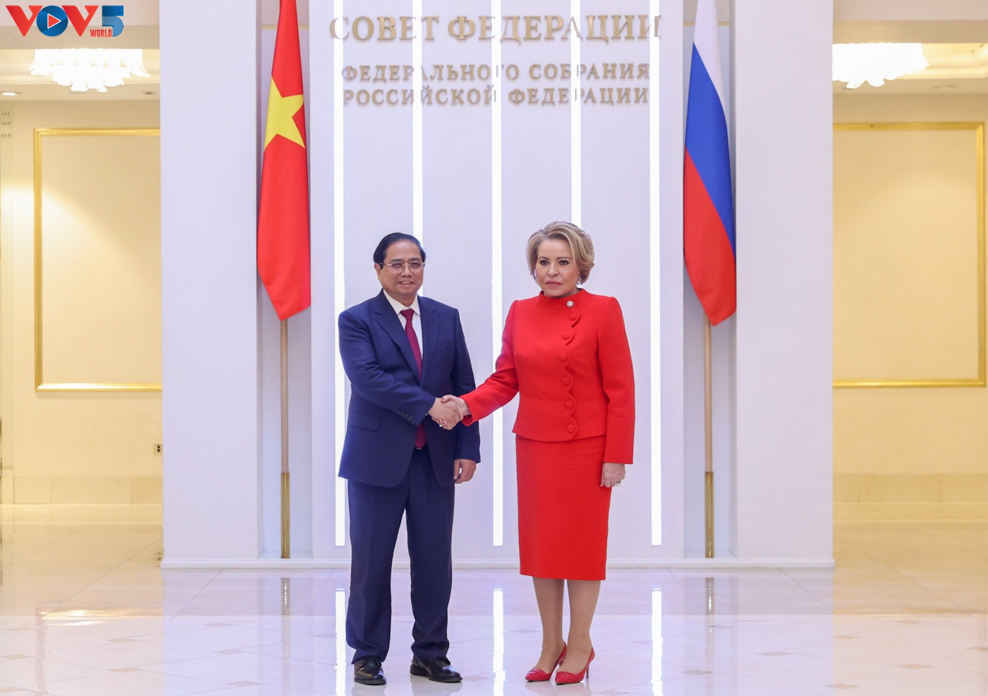 Thủ tướng Phạm Minh Chính hội kiến Chủ tịch Hội đồng Liên bang Nga Valentina Matviyenko. Ảnh: Thu Hà- Lại Hoa- Minh Phượng/VOV |