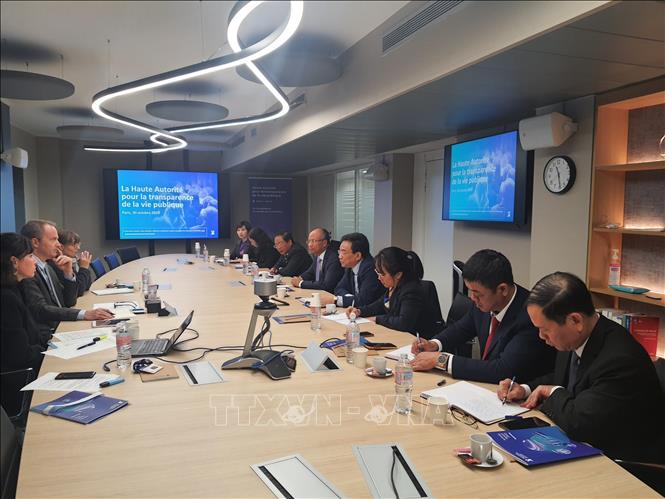 Đoàn công tác của Ủy ban Kiểm tra Trung ương làm việc với Lãnh đạo Cơ quan cấp cao về minh bạch công của Pháp (HATVP). Ảnh: TTXVN phát |