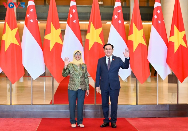 Chủ tịch Quốc hội Vương Đình Huệ và Tổng thống Singapore Halimah Yacob. Ảnh: Lê Tuyết/ VOV |