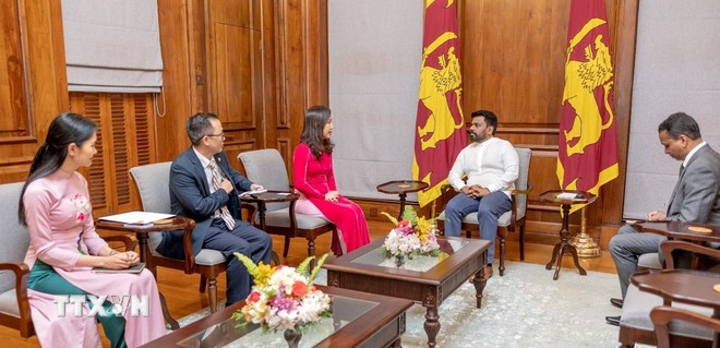 Tổng thống Sri Lanka Anura Kumara Dissanayake tiếp Đại sứ Trịnh Thị Tâm tại Văn phòng tổng thống ở thủ đô Colombo. Ảnh: TTXVN |