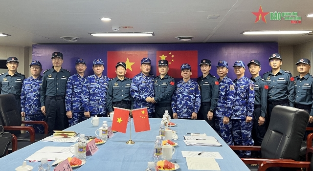 Chiều qua, đoàn công tác của lực lượng Cảnh sát biển Việt Nam do Thiếu tướng Lê Quang Đạo, Tư lệnh Cảnh sát biển Việt Nam, làm trưởng đoàn trực tiếp lên tàu Hải cảnh 4304 hội đàm tổng kết chuyến tuần tra liên hợp trên vùng biển lân cận đường phân định Vịnh Bắc Bộ Việt Nam – Trung Quốc lần thứ nhất năm 2023.
