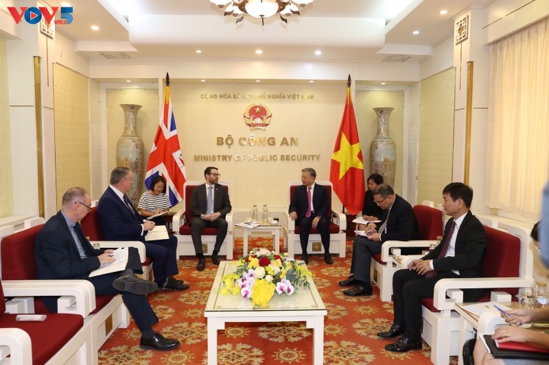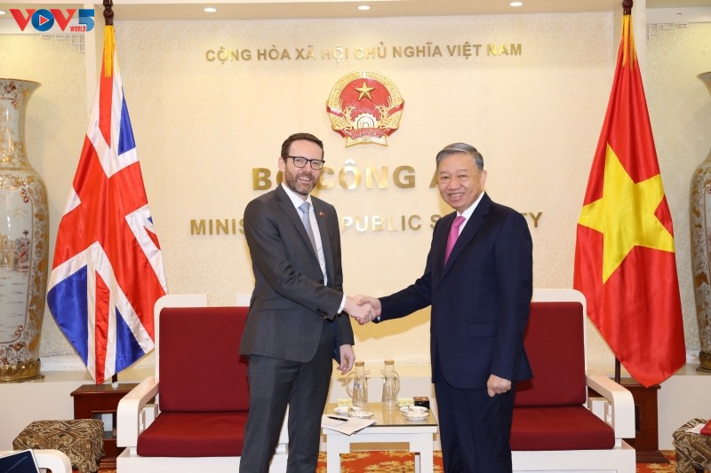 Bộ trưởng Tô Lâm và Đại sứ Đặc mệnh toàn quyền Liên hiệp Vương quốc Anh và Bắc Ireland. Ảnh: Việt Cường/ VOV |