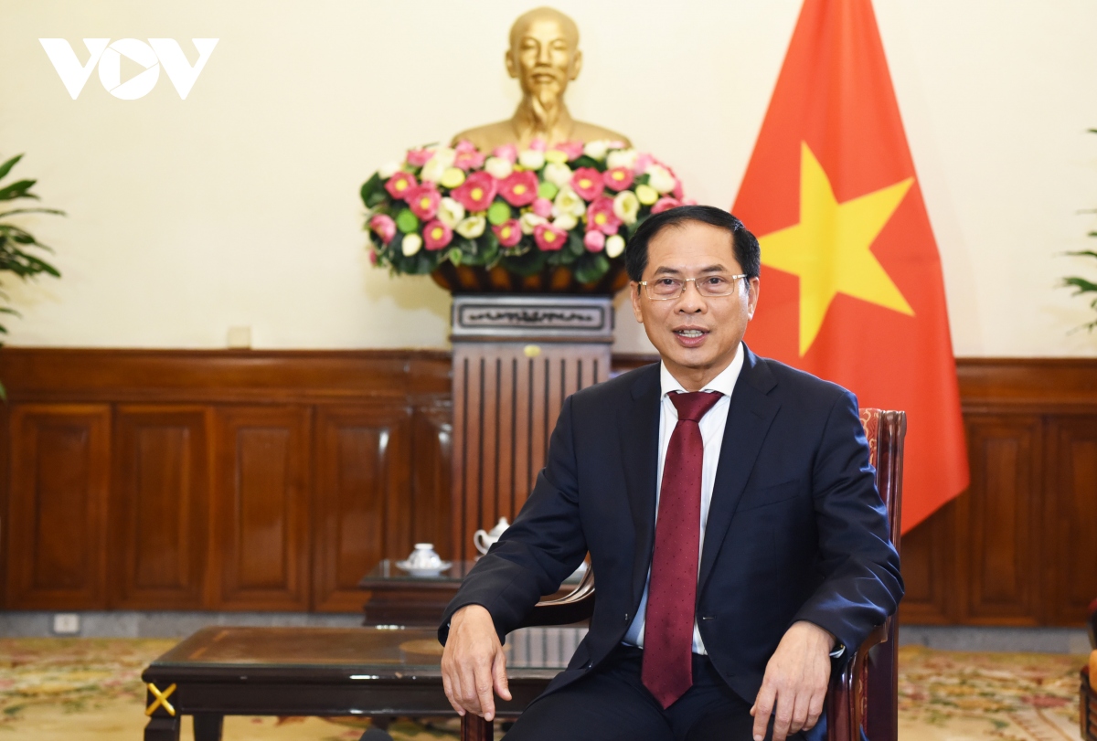 Bộ trưởng Ngoại giao Bùi Thanh Sơn trả lời phỏng vấn báo chí về việc Việt Nam trúng cử Hội đồng Nhân quyền nhiệm kỳ 2023-2025. Ảnh: VOV |