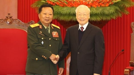 Tổng Bí thư Nguyễn Phú Trọng tiếp Bộ trưởng Quốc phòng Lào
