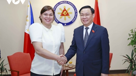 (VOV5) - Trong khuôn khổ chuyến thăm chính thức Philippines, hôm nay (24/11), tại Thủ đô Manila, Philippines, Chủ tịch Quốc hội Vương Đình Huệ hội kiến với Phó Tổng thống Philippines Sara Duterte.