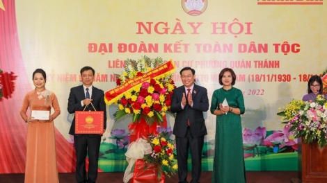 Chủ tịch Quốc hội Vương Đình Huệ dự Ngày hội Đại đoàn kết toàn dân tộc tại phường Quán Thánh, Hà Nội