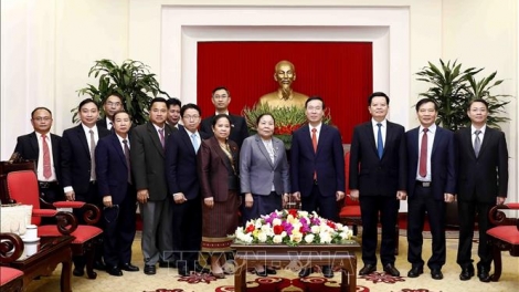 (VOV5) - Ngày 09/11, tại Trụ sở Trung ương Đảng, ông Võ Văn Thưởng, Thường trực Ban Bí thư, tiếp Đoàn đại biểu cấp cao Lào đang có chuyến thăm và làm việc tại Việt Nam.