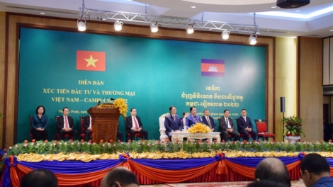 (VOV5) - Chiều 8/11, tại Phnom Penh, Thủ tướng Chính phủ Phạm Minh Chính cùng Thủ tướng Vương quốc Campuchia, Samdech Techo Hun Sen, dự Diễn đàn xúc tiến Đầu tư và thương mại Việt Nam - Campuchia.