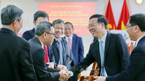 (VOV5) - Từ ngày 17-19/10, sáng 19/10, Thường trực Ban Bí thư Võ Văn Thưởng gặp cán bộ, nhân viên Đại sứ quán, các cơ quan đại diện Việt Nam và đại diện cộng đồng người Việt Nam tại Campuchia.