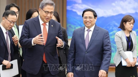 (VOV5) - Chiều 18/10, tại Trụ sở Chính phủ, Thủ tướng Phạm Minh Chính tiếp Bộ trưởng Ngoại giao Hàn Quốc Park Jin đến chào nhân dịp Bộ trưởng thăm chính thức Việt Nam.