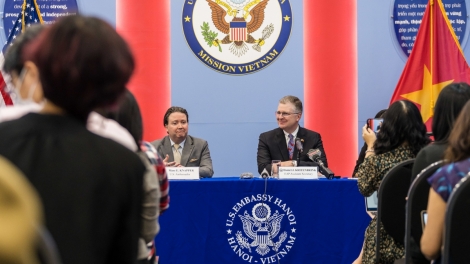 (VOV5) - Trong khuôn khổ chuyến thăm và làm việc tại Việt Nam, chiều 12/10, Trợ lý Ngoại trưởng Hoa Kỳ phụ trách khu vực Đông Á và Thái Bình Dương Daniel Kritenbrink đã có buổi gặp gỡ báo chí Việt Nam.