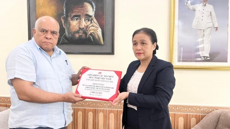 (VOV5) - Nhân dịp này, chủ tịch Nguyễn Phương Nga đã trao số tiền 1,000 euro ủng hộ nhân dân Cuba, góp phần khắc phục những khó khăn hiện tại.