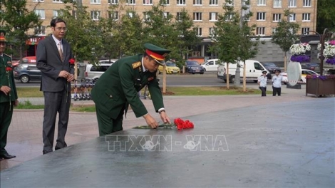 Đoàn Việt Nam tham gia Hội thao Quân sự quốc tế dâng hoa tại Tượng đài Chủ tịch Hồ Chí Minh ở Moscow