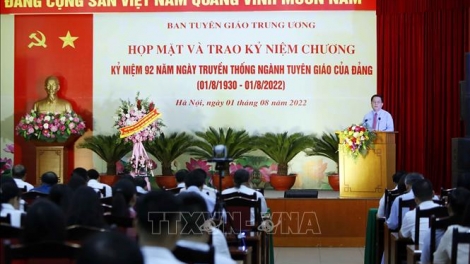 (VOV5) - Sáng 1/8, tại Hà Nội, Ban Tuyên giáo Trung ương tổ chức cuộc gặp mặt và trao kỷ niệm chương nhân kỷ niệm 92 năm ngày truyền thống ngành Tuyên giáo của Đảng.