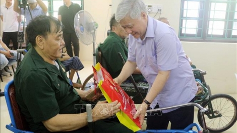 (VOV5) - Chiều 19/7, tại Trung tâm điều dưỡng thương binh Duy Tiên, tỉnh Hà Nam, Chủ tịch Ủy ban Trung ương Mặt trận Tổ quốc Việt Nam Đỗ Văn Chiến đến thăm, tặng quà thương, bệnh binh.