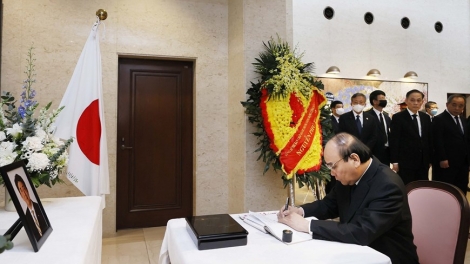Lãnh đạo Việt Nam ghi sổ tang thương tiếc cựu Thủ tướng Nhật Abe Shinzo