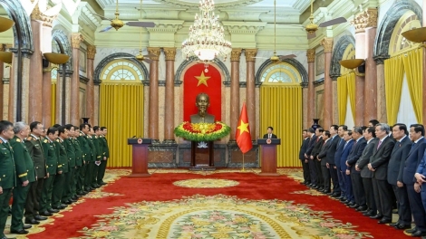 (VOV5) - Chủ tịch nước Lương Cường đề nghị các đồng chí vừa được bổ nhiệm, thăng quân hàm tiếp tục phát huy truyền thống vẻ vang của quân đội nhân dân Việt Nam anh hùng, phẩm chất “Bộ đội Cụ Hồ”.