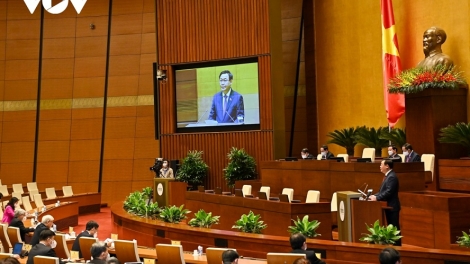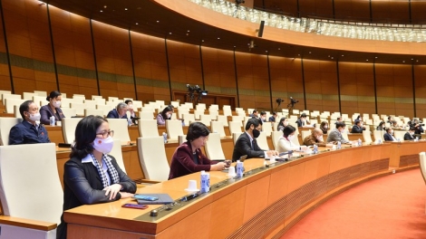 (VOV5) - Cuộc họp diễn ra theo hình thức tập trung tại nhà Quốc hội, kết hợp trực tuyến. Tham dự có Tổng Bí thư Nguyễn Phú Trọng.