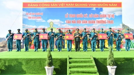 Tỉnh Kiên Giang trao Quốc kỳ, cờ dân quân tự vệ cho tàu Hải đội dân quân thường trực