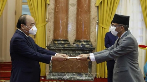 (VOV5) - Chiều 09/03, tại Phủ Chủ tịch, Chủ tịch nước Nguyễn Xuân Phúc tiếp các Đại sứ tới trình Quốc thư.