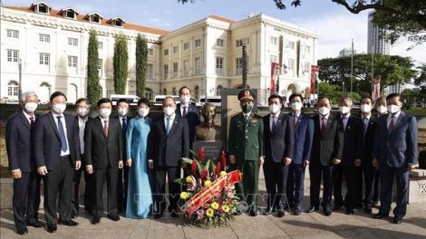 Chủ tịch nước Nguyễn Xuân Phúc dâng hoa tại tượng đài Chủ tịch Hồ Chí Minh ở Singapore
