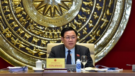Chủ tịch Quốc hội Vương Đình Huệ làm việc với Đoàn giám sát việc sắp xếp đơn vị hành chính