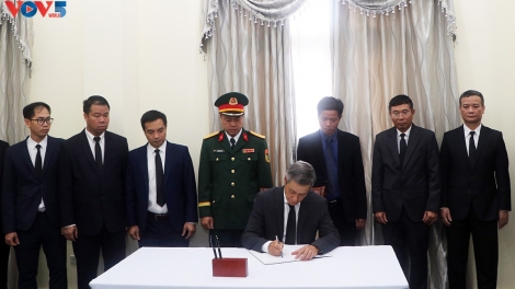 (VOV5) - Mở đầu sổ tang, Đại sứ Vũ Quang Minh bày tỏ lòng thương tiếc nguyên Chủ tịch nước Trần Đức Lương.