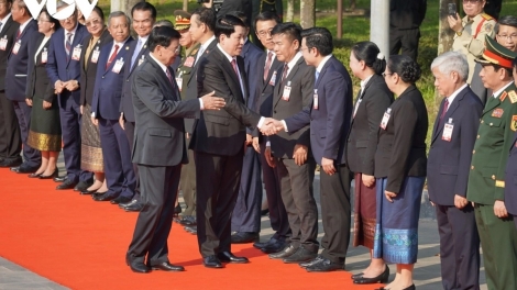 (VOV5) - Tổng Bí thư, Chủ tịch nước Lào Thongloun Sisoulith mời Chủ tịch nước Lương Cường bước lên bục danh dự. Quân nhạc cử Quốc thiều Việt Nam và Lào vang lên.