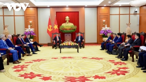 (VOV5) - Tổng Bí thư đề nghị Đại sứ quan tâm thúc đẩy một số lĩnh vực hợp tác song phương, bao gồm: tăng cường hợp tác chính trị - ngoại giao, an ninh, quốc phòng.