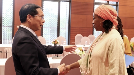 (VOV5) - Chiều ngày 17/4, tại Hà Nội, Phó Thủ tướng, Bộ trưởng Bộ Ngoại giao Việt Nam Bùi Thanh Sơn tiếp Phó Tổng Giám đốc Tổ chức Phát triển Công nghiệp Liên hợp quốc (UNIDO) Fatou Haidara.