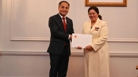 (VOV5) - Ngày 16/4, tại Phủ Toàn quyền New Zealand ở Thủ đô Wellington, Đại sứ Việt Nam tại New Zealand Phan Minh Giang trình Thư ủy nhiệm của Chủ tịch nước Lương Cường lên Toàn quyền cindy Kiro.
