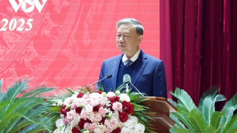 (VOV5) - Tổng Bí thư Tô Lâm biểu dương, ghi nhận sự đóng góp của nhân dân các dân tộc huyện Quản Bạ trong thành tựu chung của tỉnh, của đất nước.