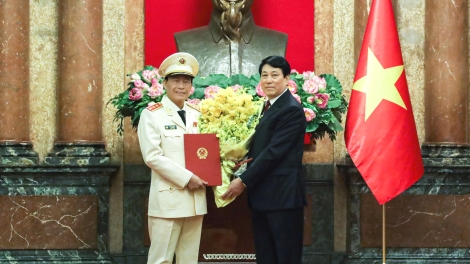 Chủ tịch nước Lương Cường trao quyết định thăng cấp bậc hàm Thượng tướng đối với Thứ trưởng Bộ Công an Lê Quốc Hùng