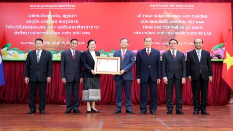 (VOV5) - Đây là phần thưởng cao quý của Đảng, Nhà nước Việt Nam dành tặng các tập thể, cá nhân thuộc Văn phòng Chủ tịch nước Lào.