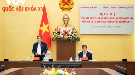 (VOV5) - Chủ tịch Quốc hội Trần Thanh Mẫn đề nghị thời gian tới, Đảng đoàn Quốc hội, Đảng ủy cơ quan Văn phòng Quốc hội phải tham mưu, phục vụ tốt các phiên họp của Ủy ban Thường vụ Quốc hội.