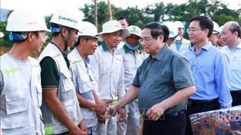 (VOV5) - Thủ tướng đã thăm hỏi thăm kỹ sư, công nhân thi công trên công trường; đề nghị chủ đầu tư, nhà thầu nỗ lực hoàn thành công tác giải phóng mặt bằng.