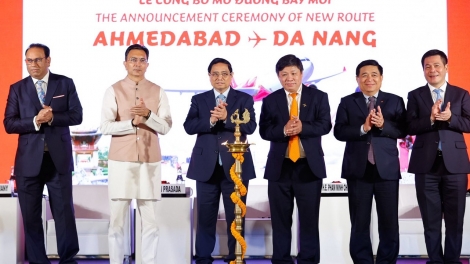 (VOV5) -Thủ tướng và các đại biểu cũng đã dự lễ công bố đường bay Đà Nẵng (Việt Nam) - Ahmedabad (Bang Gujarat, Ấn Độ) và đón hành khách thứ 200 triệu của hãng hàng không Vietjet.