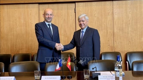 (VOV5) - Chủ tịch UBTW MTTQ Việt Nam Đỗ Văn Chiến nhấn mạnh quan hệ Đối tác Chiến lược Việt Nam - Pháp phát triển tốt đẹp trên các lĩnh vực trong những năm qua.