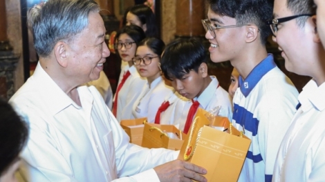 Chủ tịch nước Tô Lâm gặp mặt các thanh thiếu niên tiêu biểu là con, cháu trong lực lượng công an nhân dân