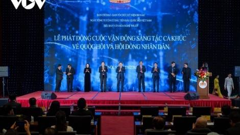 (VOV5) - Phó Chủ tịch Quốc hội Trần Quang Phương nhấn mạnh cuộc vận động sáng tác ca khúc về Quốc hội và HĐND được tổ chức nhằm thu hút đông đảo các nhạc sĩ chuyên nghiệp và không chuyên tham gia.