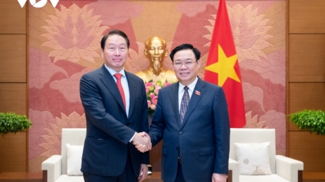 Chủ tịch Quốc hội Vương Đình Huệ tiếp Chủ tịch Tập đoàn SK