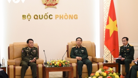 (VOV5) - Đại tướng Vong Pisen, Tổng Tư lệnh Quân đội Hoàng gia Campuchia, đã đến chào xã giao Đại tướng Phan Văn Giang, Bộ trưởng Bộ Quốc phòng.